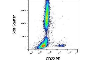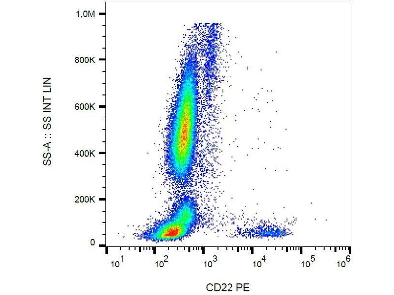 The antibody IS7 reacts with an extracellular epitope of CD22 (BL-CAM), a 130 kDa type I transmembrane glycoprotein (immunoglobulin superfamily) expressed in the cytoplasm of pro-B and pre-B lymphocytes, and on the surface of mature and activated B lymphocytes, it is lost on plasma cells, peripheral blood T lymphocytes, granulocytes and monocytes.