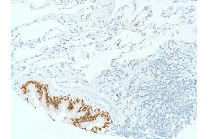 Usage: IMMUNOHISTOCHEMISTRY: Formalin-fixed, paraffin-embedded tissues are suitable for use with this primary antibody. Deparaffinization: Deparaffinize slides using xylene or xylene alternative and graded alcohols. Antibody Dilution: If using the concentrate format of this product, dilute the antibody 1:100. Antigen Retrieval: Boil tissue section in 10 mM citrate buffer, pH 6.0 for 10 min followed by cooling at room temperature for 20 min. Primary Antibody Incubation: Incubate for 30 minutes at room temperature. Slide Washing: Slides must be washed in between steps. Rinse slides with PBS/0.05 % Tween. IHC Positive control: Newborn brain. WESTERN BLOT: Recommended starting protocol: Dilute the antibody 1:25. Incubate for 1 hour at room temperature. The dilution is an estimate. actual results may differ because of variability in methods and protocols. Positive Control: MCF7 cell lysate. -