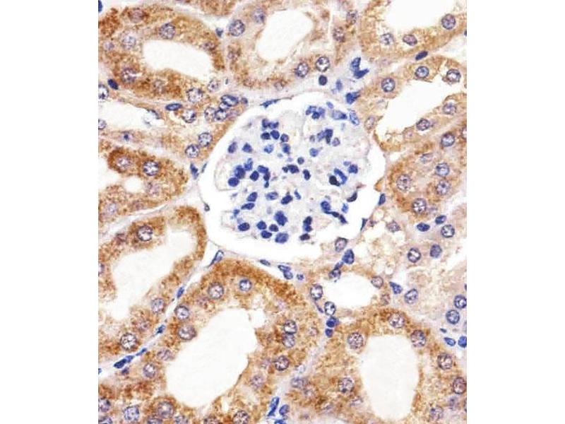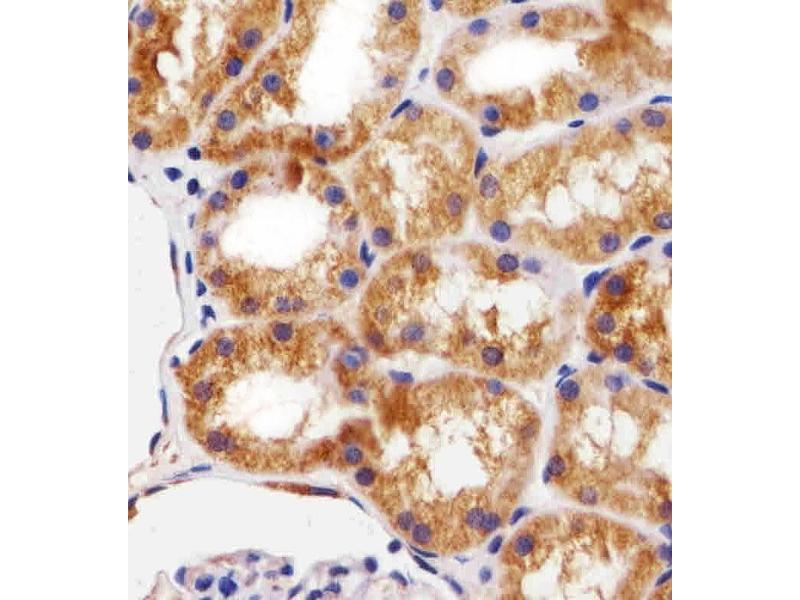 This BCL10 antibody is generated from a mouse immunized with a KLH conjugated synthetic peptide between 1-143 amino acids from the human region of human BCL10.