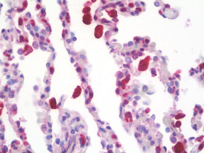 - Recognizes the human CD68 cell surface antigen, a 110kD glycoprotein primarily expressed by macrophages and monocytes.