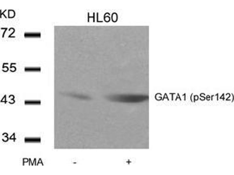 GATA1 (Globin transcription factor 1) is a Cys2/Cys2 zinc finger DNA binding protein that is expressed primarily in erythroid, megakaryocytic, mast cells and eosinophilic cells. It belongs to the GATA family of transcription factors. GATA1 is a transcriptional activator which probably serves as a general switch factor for erythroid development. It binds to DNA sites with the consensus sequence [AT]GATA[AG] within regulatory regions of globin genes and of other genes expressed in erythroid cells. The protein also plays an important role in erythroid development by regulating the switch from fetal hemoglobin production to adult hemoglobin. Mutations in this gene have been associated with X-linked dyserythropoietic anemia and thrombocytopenia. Acquired somatic mutations in GATA1 occur in virtually all children with Down's Syndrome, congenital transient myeloproliferative syndrome (TMD) and acute megakaryocytic leukemia.Synonyms: ERYF1, Eryf1, Erythroid transcription factor, GATA-1, GATA-binding factor 1, GF-1, GF1, NF-E1 DNA-binding protein