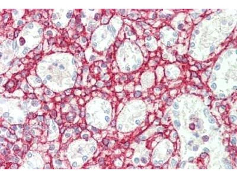 Usage: Immunohistochemistry: Formalin-fixed paraffin-embedded sections. Sandwich ELISA: Recombinant protein. Western Blot: Transfected lysate, Recombinant protein. -