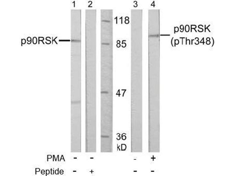 This antibody detects endogenous levels of p90RSK only when phosphorylated at Threonine 348.