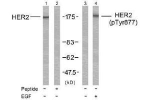 - The antiserum was produced against synthesized non-phosphopeptide derived from human HER2 around the phosphorylation site of tyrosine 877 (T-E-YP-H-A).