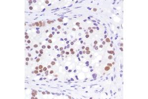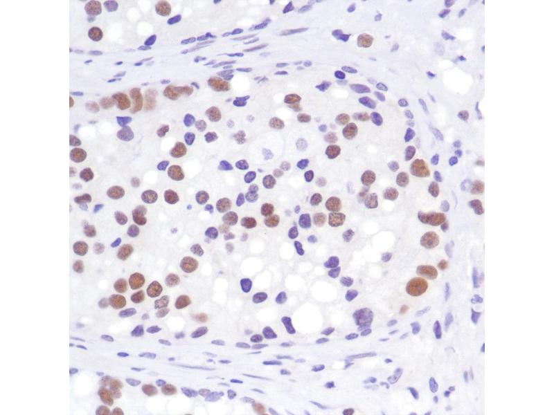 Usage: IMMUNOHISTOCHEMISTRY: Formalin-fixed, paraffin-embedded tissues are suitable for use with this primary antibody. Deparaffinization: Deparaffinize slides using xylene or xylene alternative and graded alcohols. Antibody Dilution: If using the concentrate format of this product, dilute the antibody 1:100. Antigen Retrieval: Boil tissue section in EDTA buffer, pH 8.0 for 10 min followed by cooling at room temperature for 20 min. Primary Antibody Incubation: Incubate for 10 minutes at room temperature. Slide Washing: Slides must be washed in between steps. Rinse slides with PBS/0.05 % Tween. IHC Positive control: Prostate, Prostate Adenocarcinoma . Cellular localization: Cytoplasm, Nucleus. -