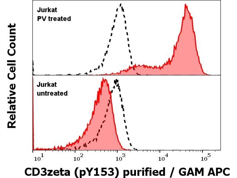 Western blotting: Recommended dilution: 2 - 5 μg/mL, positive control: Jurkat cells lysate treated with pervanadate, splenocyte lysate of Balb/c or F1 mouse treated with pervanadate, non-reducing conditions recommended. Flow cytometry: Intracellular staining, recommended dilution: 1-4 μg/mL, positive control: Jurkat cells treated with pervanadate.