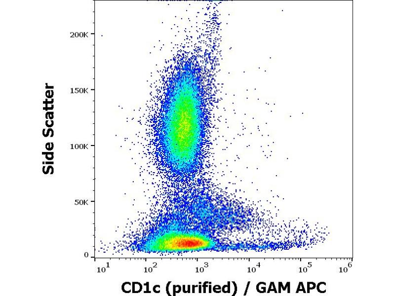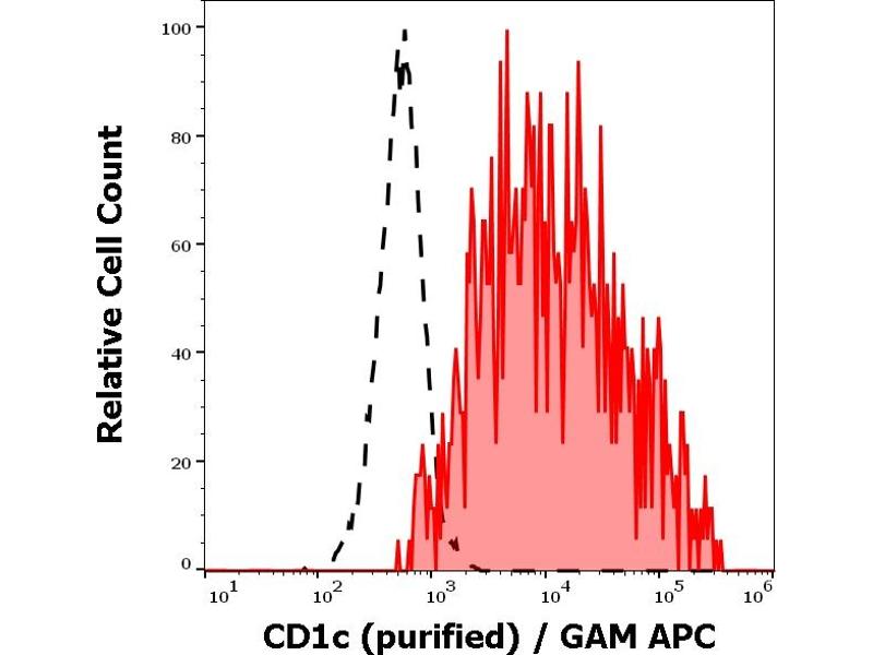 The mouse monoclonal antibody L161 recognizes an extracellular epitope of CD1c, (R7), a 43 kDa type I glycoprotein associated with beta2-microglobulin. It is expressed on cortical thymocytes (strongly), Langerhans cells, dendritic cells, B and some T cells.
