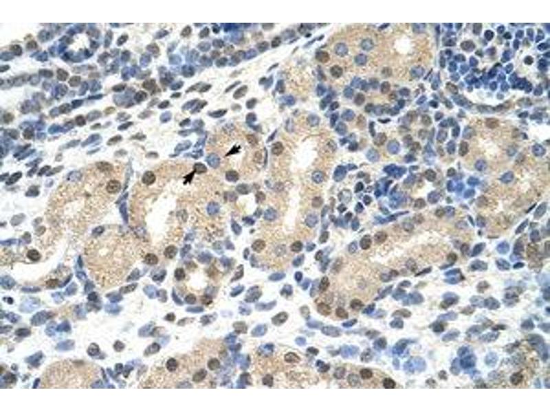 Synthetic peptide from N-Terminus of human MLXIPL (Q9NP71-5). Percent identity by BLAST analysis: Human, Chimpanzee, Gorilla (100%), Monkey, Galago, Marmoset, Mouse, Rat (92%), Bovine, Guinea pig (85%).
