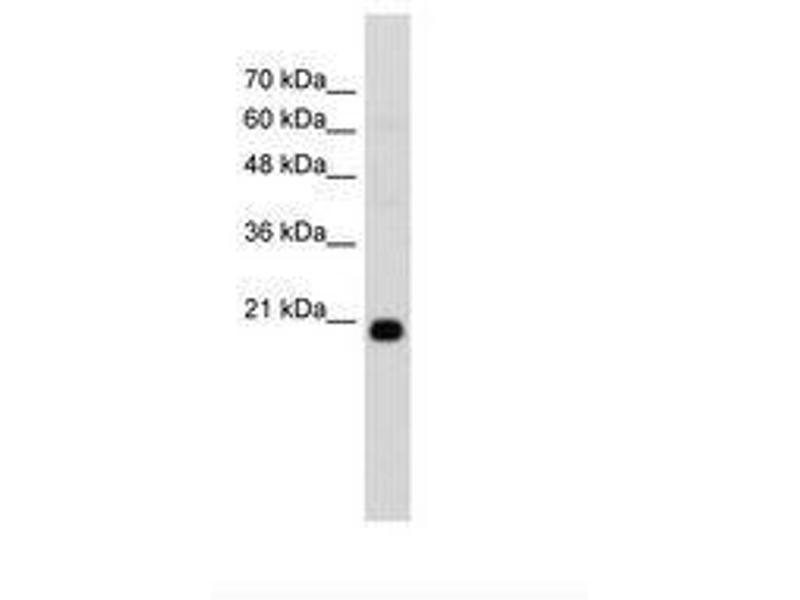 Synthetic peptide from C-Terminus of human FBXO25 (Q8TCJ0). Percent identity by BLAST analysis: Human, Chimpanzee, Gorilla, Orangutan, Gibbon, Monkey, Galago, Marmoset, Elephant, Panda, Dog, Bat, Horse, Opossum, Guinea pig, Turkey, Zebra finch, Chicken, Lizard, Trout, Salmon, Zebrafish (100%), Mouse, Rat, Bovine, Rabbit, Platypus, Xenopus, Stickleback (92%), Catfish (83%).