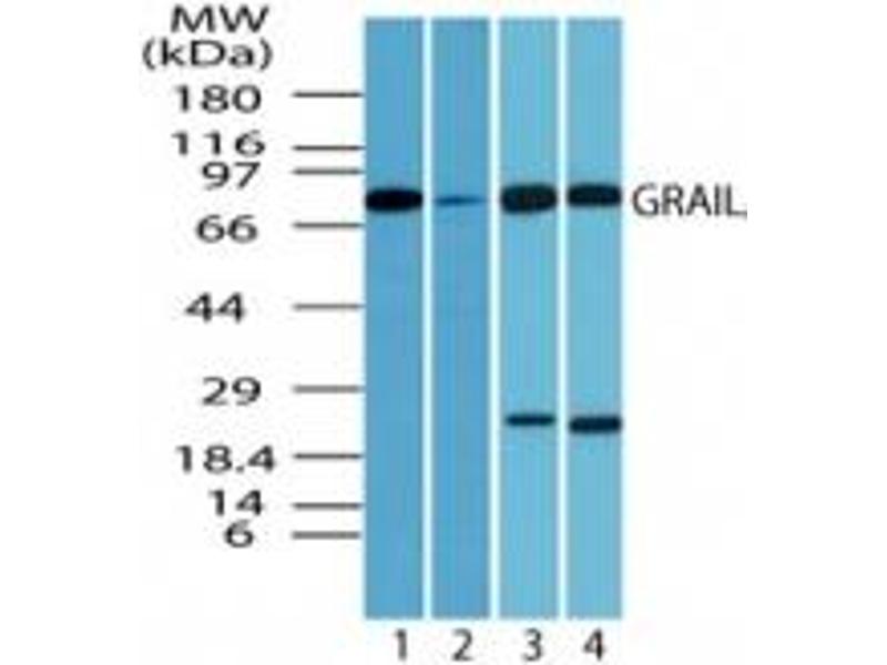 A synthetic peptide corresponding to amino acids (IFYSARRLRNARAQSRKQRQLKADAKK) portion of amino acids 227-253 of human GRAIL was used as immunogen, GenBank no. ref|NP_919445.1|.