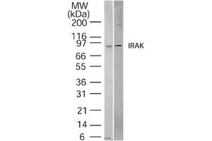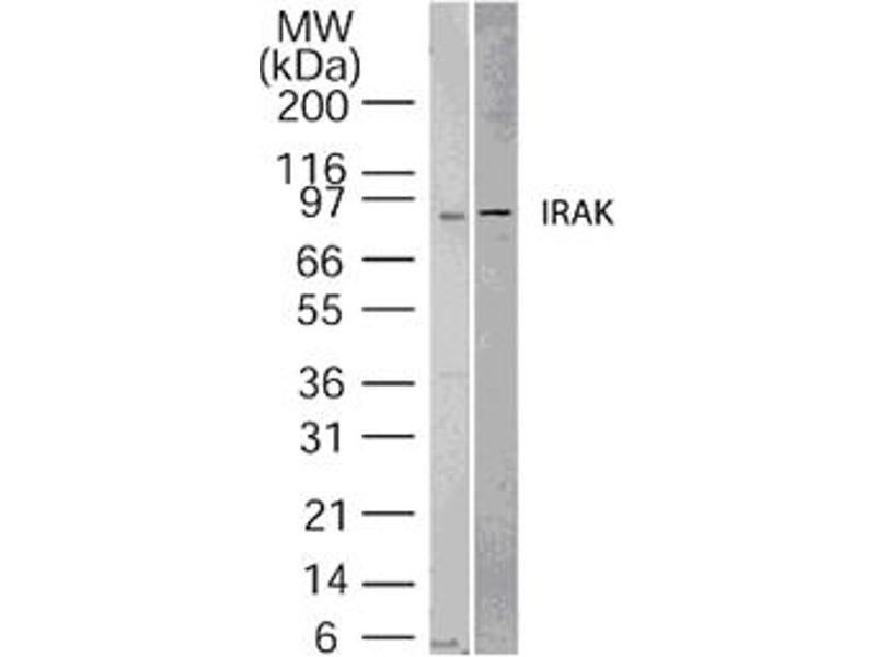 - An 80 kD band is observed. The is human, mouse, and rat (based on sequence) reactive, and has no cross reactivity to IRAK2.