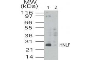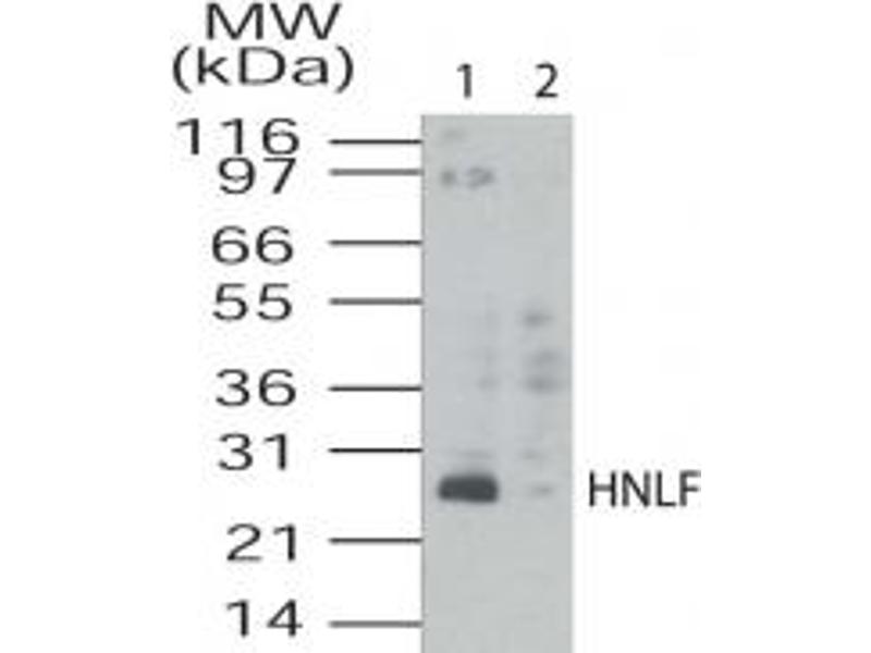 A synthetic peptide containing amino acids CNYRTQMWDKQKEV(amino acids 55-67) of human HNLF. Genbank accession no. EAL23751. Percent identity by BLAST analysis: Human, Gorilla, Monkey, Marmoset, Mouse, Rat, Hamster, Elephant, Porcine, Bovine, Bat, Horse, Rabbit (100%), Panda (92%).