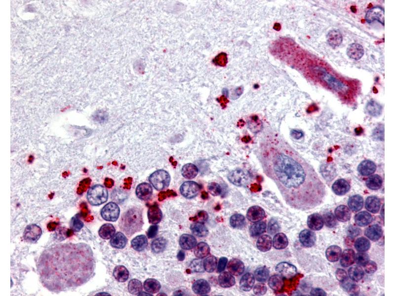 Usage: Immunohistochemistry: This antibody was validated for use in immunohistochemistry on a panel of 21 formalin-fixed, paraffin-embedded (FFPE) human tissues after heat induced antigen retrieval in pH 6.0 citrate buffer. After incubation with the primary antibody, slides were incubated with biotinylated secondary antibody, followed by alkaline phosphatase-streptavidin and chromogen. The stained slides were evaluated by a pathologist to confirm staining specificity. The optimal working concentration for this antibody was determined to be 20 μg/mL. -