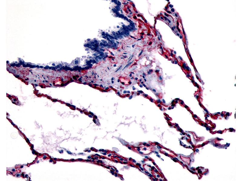 Usage: Immunohistochemistry: This antibody was validated for use in immunohistochemistry on a panel of 21 formalin-fixed, paraffin-embedded (FFPE) human tissues after heat induced antigen retrieval in pH 6.0 citrate buffer. After incubation with the primary antibody, slides were incubated with biotinylated secondary antibody, followed by alkaline phosphatase-streptavidin and chromogen. The stained slides were evaluated by a pathologist to confirm staining specificity. The optimal working concentration for this antibody was determined to be 3 μg/mL. -