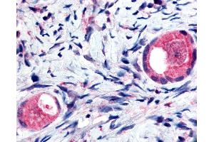 Usage: Immunohistochemistry: This antibody was validated for use in immunohistochemistry on a panel of 21 formalin-fixed, paraffin-embedded (FFPE) human tissues after heat induced antigen retrieval in pH 6.0 citrate buffer. After incubation with the primary antibody, slides were incubated with biotinylated secondary antibody, followed by alkaline phosphatase-streptavidin and chromogen. The stained slides were evaluated by a pathologist to confirm staining specificity. The optimal working concentration for this antibody was determined to be 5 μg/mL. -