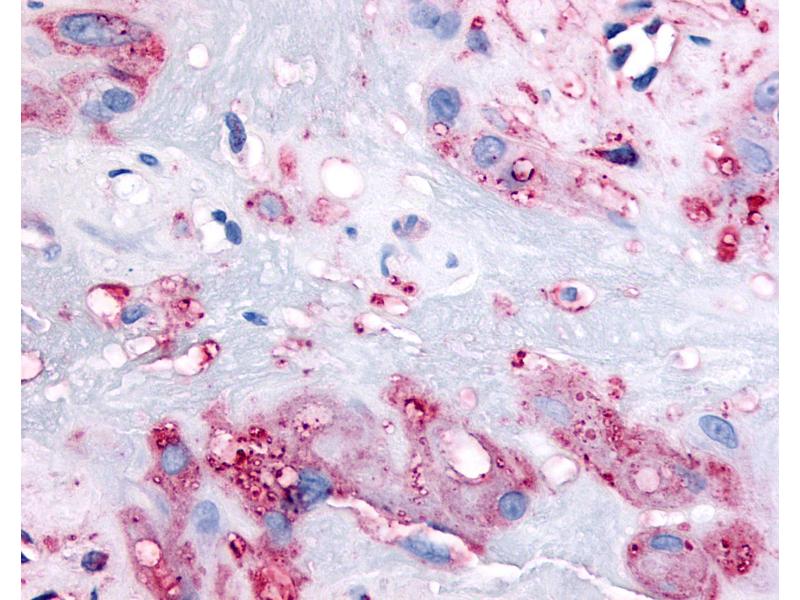 Usage: Immunohistochemistry: This antibody was validated for use in immunohistochemistry on a panel of 21 formalin-fixed, paraffin-embedded (FFPE) human tissues after heat induced antigen retrieval in pH 6.0 citrate buffer. After incubation with the primary antibody, slides were incubated with biotinylated secondary antibody, followed by alkaline phosphatase-streptavidin and chromogen. The stained slides were evaluated by a pathologist to confirm staining specificity. The optimal working concentration for this antibody was determined to be 10 μg/mL. -