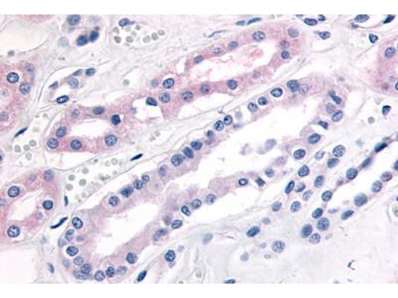 Usage: Immunohistochemistry: This antibody was validated for use in immunohistochemistry on a panel of 21 formalin-fixed, paraffin-embedded (FFPE) human tissues after heat induced antigen retrieval in pH 6.0 citrate buffer. After incubation with the primary antibody, slides were incubated with biotinylated secondary antibody, followed by alkaline phosphatase-streptavidin and chromogen. The stained slides were evaluated by a pathologist to confirm staining specificity. The optimal working concentration for this antibody was determined to be 20 μg/mL. -
