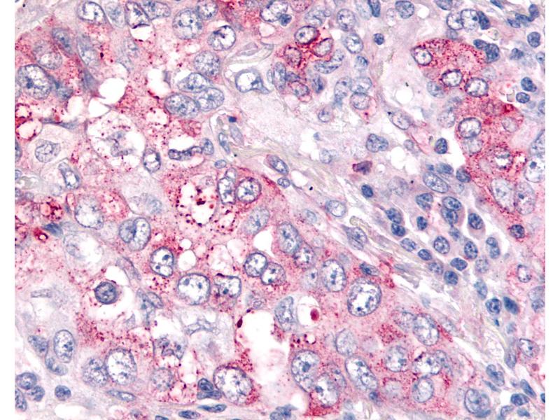Usage: Immunohistochemistry: This antibody was validated for use in immunohistochemistry on a panel of 21 formalin-fixed, paraffin-embedded (FFPE) human tissues after heat induced antigen retrieval in pH 6.0 citrate buffer. After incubation with the primary antibody, slides were incubated with biotinylated secondary antibody, followed by alkaline phosphatase-streptavidin and chromogen. The stained slides were evaluated by a pathologist to confirm staining specificity. The optimal working concentration for this antibody was determined to be 5 μg/mL. -