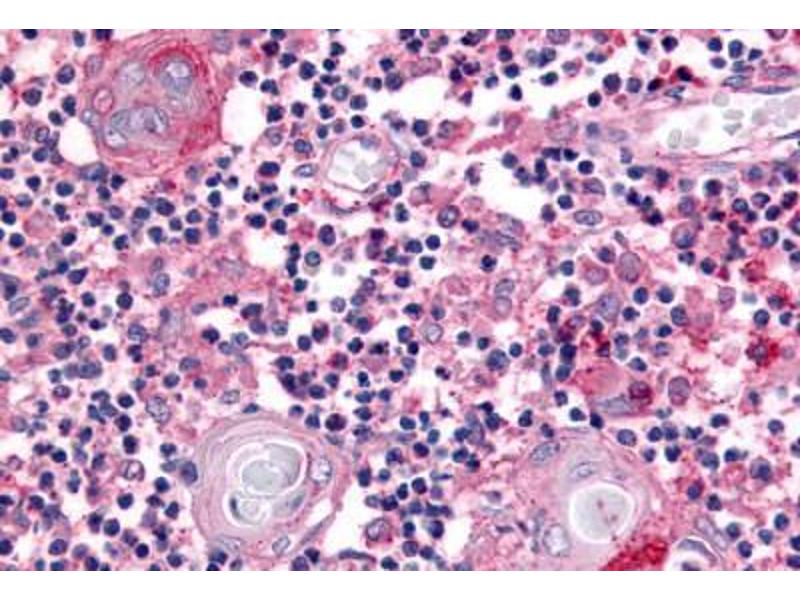 Usage: Immunohistochemistry: This antibody was validated for use in immunohistochemistry on a panel of 21 formalin-fixed, paraffin-embedded (FFPE) human tissues after heat induced antigen retrieval in pH 6.0 citrate buffer. After incubation with the primary antibody, slides were incubated with biotinylated secondary antibody, followed by alkaline phosphatase-streptavidin and chromogen. The stained slides were evaluated by a pathologist to confirm staining specificity. The optimal working concentration for this antibody was determined to be 5 μg/mL. -