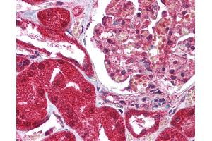 Usage: Immunohistochemistry: This antibody was validated for use in immunohistochemistry on a panel of 21 formalin-fixed, paraffin-embedded (FFPE) human tissues after heat induced antigen retrieval in pH 6.0 citrate buffer. After incubation with the primary antibody, slides were incubated with biotinylated secondary antibody, followed by alkaline phosphatase-streptavidin and chromogen. The stained slides were evaluated by a pathologist to confirm staining specificity. The optimal working concentration for this antibody was determined to be 5 μg/mL. -