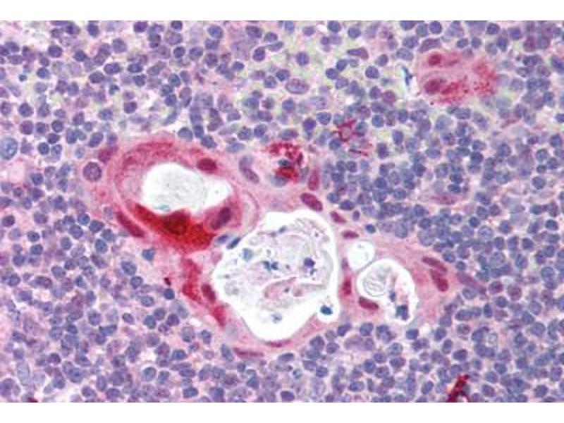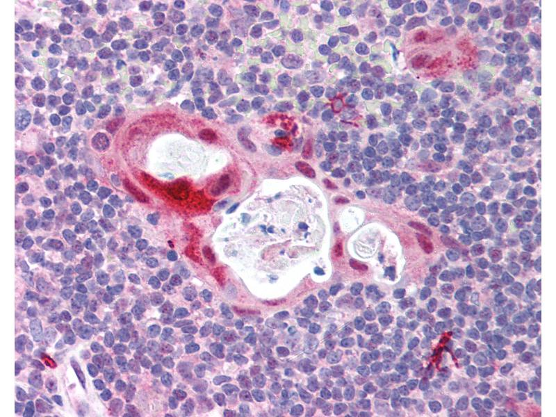 Usage: Immunohistochemistry: This antibody was validated for use in immunohistochemistry on a panel of 21 formalin-fixed, paraffin-embedded (FFPE) human tissues after heat induced antigen retrieval in pH 6.0 citrate buffer. After incubation with the primary antibody, slides were incubated with biotinylated secondary antibody, followed by alkaline phosphatase-streptavidin and chromogen. The stained slides were evaluated by a pathologist to confirm staining specificity. The optimal working concentration for this antibody was determined to be 5 μg/mL. -
