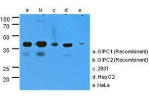 - GIPC antibody was raised in Mouse using recombinant human GIPC2 (1-315aa) purified from E. coli as the immunogen