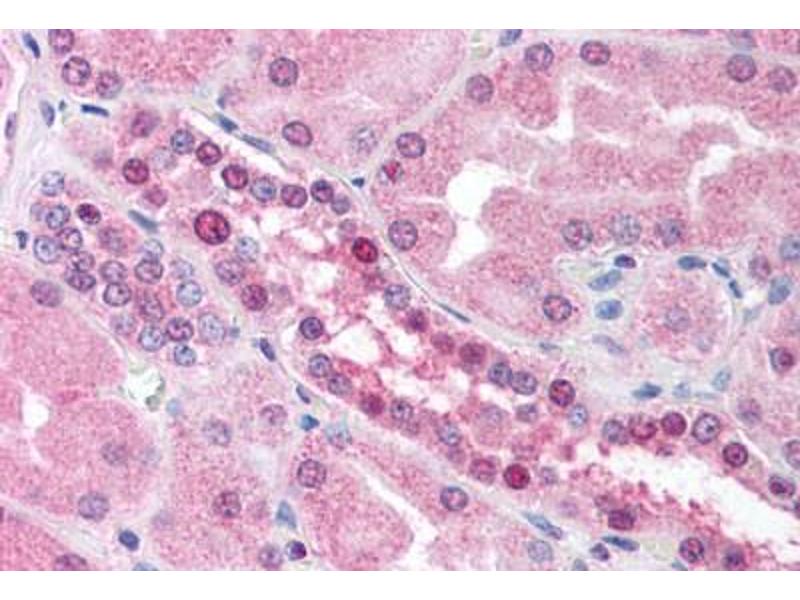 Usage: Immunohistochemistry: This antibody was validated for use in immunohistochemistry on a panel of 21 formalin-fixed, paraffin-embedded (FFPE) human tissues after heat induced antigen retrieval in pH 6.0 citrate buffer. After incubation with the primary antibody, slides were incubated with biotinylated secondary antibody, followed by alkaline phosphatase-streptavidin and chromogen. The stained slides were evaluated by a pathologist to confirm staining specificity. The optimal working concentration for this antibody was determined to be 5 μg/mL. -