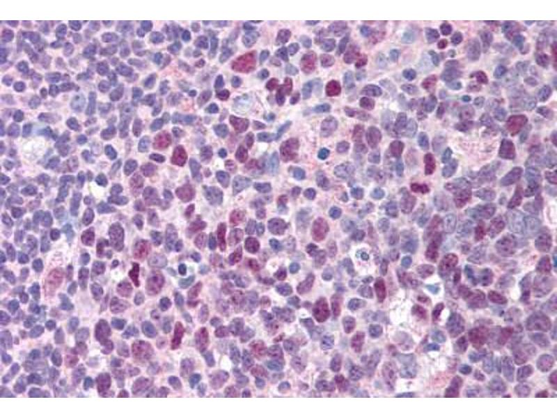 Usage: Immunohistochemistry: This antibody was validated for use in immunohistochemistry on a panel of 21 formalin-fixed, paraffin-embedded (FFPE) human tissues after heat induced antigen retrieval in pH 6.0 citrate buffer. After incubation with the primary antibody, slides were incubated with biotinylated secondary antibody, followed by alkaline phosphatase-streptavidin and chromogen. The stained slides were evaluated by a pathologist to confirm staining specificity. The optimal working concentration for this antibody was determined to be 10 μg/mL. -