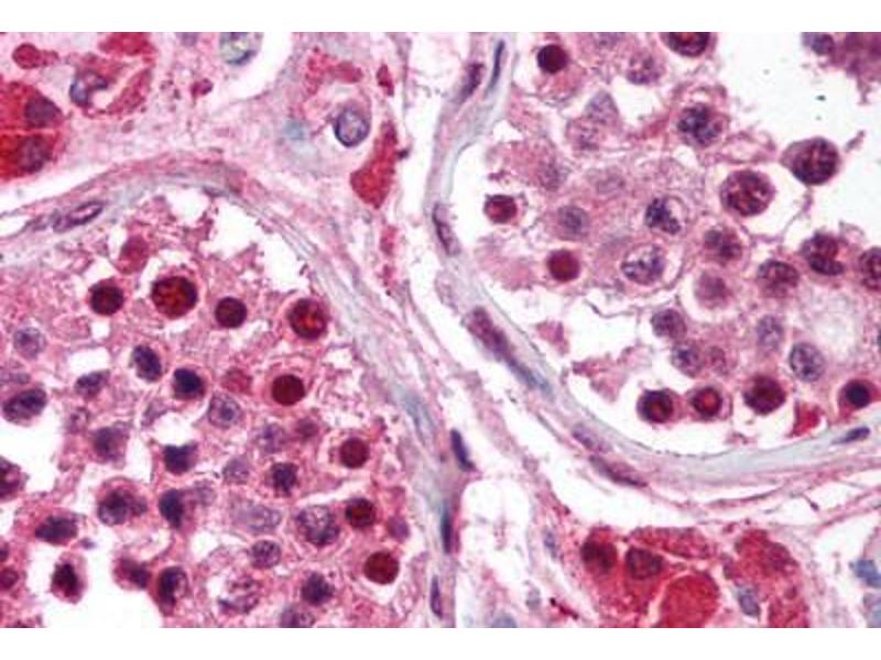 Usage: Immunohistochemistry: This antibody was validated for use in immunohistochemistry on a panel of 21 formalin-fixed, paraffin-embedded (FFPE) human tissues after heat induced antigen retrieval in pH 6.0 citrate buffer. After incubation with the primary antibody, slides were incubated with biotinylated secondary antibody, followed by alkaline phosphatase-streptavidin and chromogen. The stained slides were evaluated by a pathologist to confirm staining specificity. The optimal working concentration for this antibody was determined to be 5 μg/mL. -