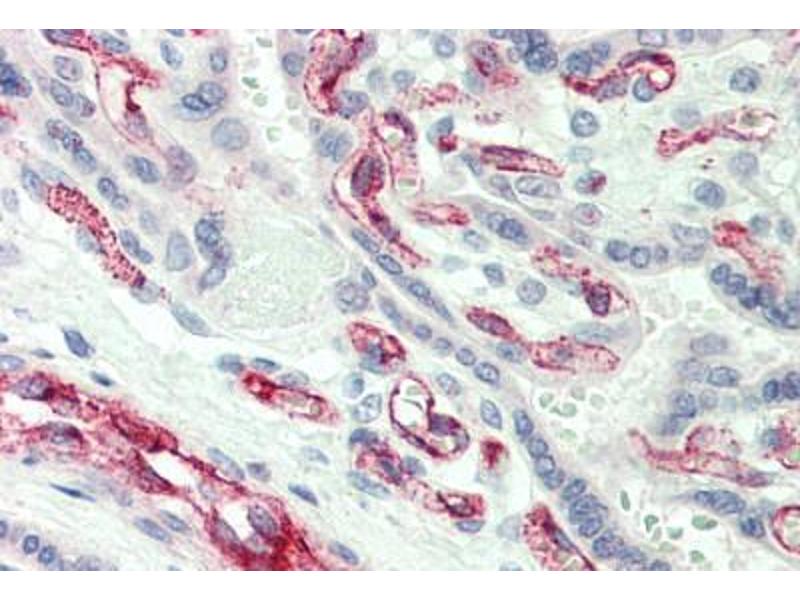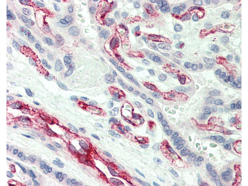Usage: Immunohistochemistry: This antibody was validated for use in immunohistochemistry on a panel of 21 formalin-fixed, paraffin-embedded (FFPE) human tissues after heat induced antigen retrieval in pH 6.0 citrate buffer. After incubation with the primary antibody, slides were incubated with biotinylated secondary antibody, followed by alkaline phosphatase-streptavidin and chromogen. The stained slides were evaluated by a pathologist to confirm staining specificity. The optimal working concentration for this antibody was determined to be 10 μg/mL. -