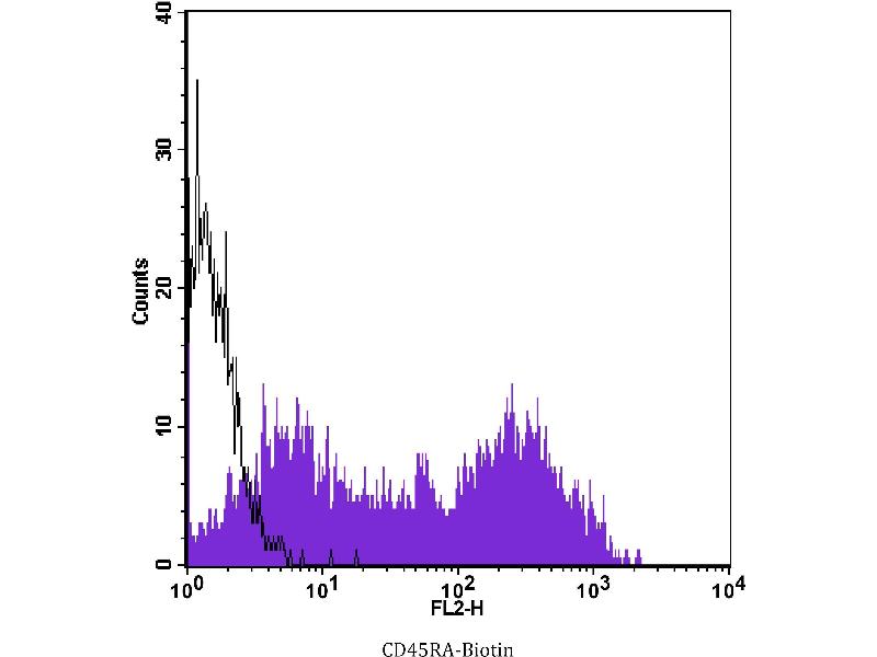 This is clustered as CD45RA, and is expressed on naive/resting T cells and on medullart thymocytes. In comparison, CD45RO is expressed on memory/activated T cells and cortical thymocytes. CD45RA and CD45RO are useful for discriminating between naive and memory T cells in the study of the immune system.