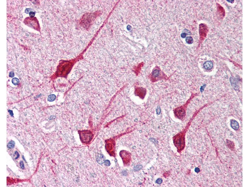 Usage: Immunohistochemistry: This antibody was validated for use in immunohistochemistry on a panel of 21 formalin-fixed, paraffin-embedded (FFPE) human tissues after heat induced antigen retrieval in pH 6.0 citrate buffer. After incubation with the primary antibody, slides were incubated with biotinylated secondary antibody, followed by alkaline phosphatase-streptavidin and chromogen. The stained slides were evaluated by a pathologist to confirm staining specificity. The optimal working concentration for this antibody was determined to be 2.5 μg/mL. -