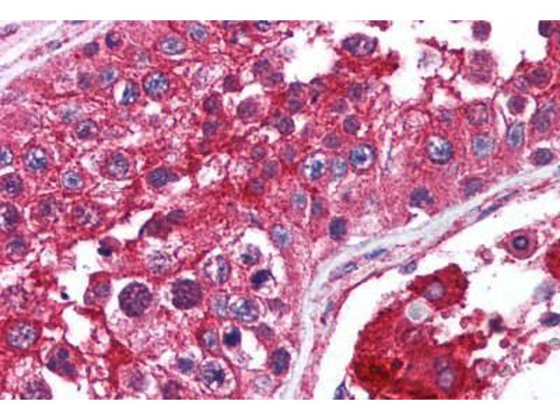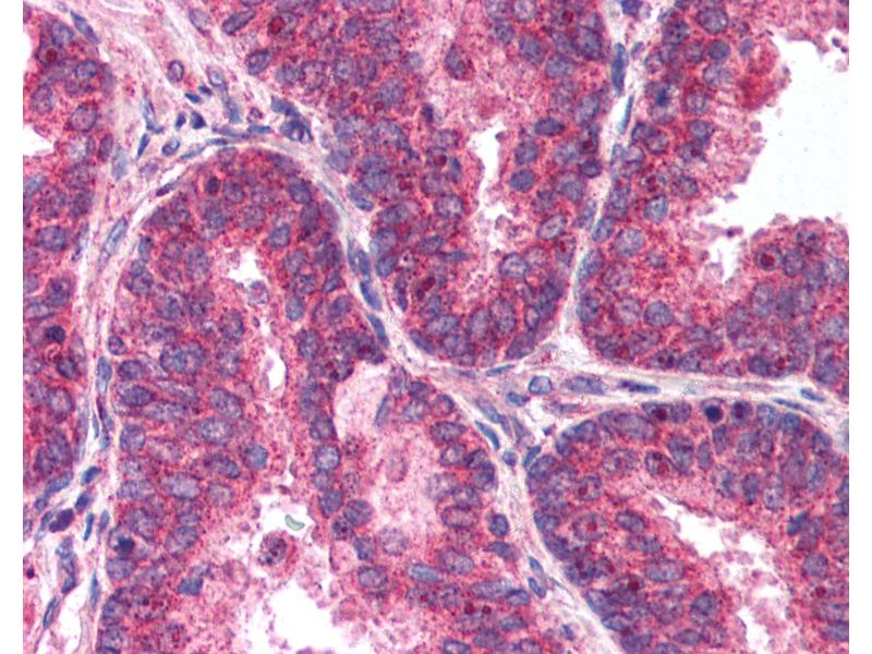 Usage: Immunohistochemistry: This antibody was validated for use in immunohistochemistry on a panel of 21 formalin-fixed, paraffin-embedded (FFPE) human tissues after heat induced antigen retrieval in pH 6.0 citrate buffer. After incubation with the primary antibody, slides were incubated with biotinylated secondary antibody, followed by alkaline phosphatase-streptavidin and chromogen. The stained slides were evaluated by a pathologist to confirm staining specificity. The optimal working concentration for this antibody was determined to be 2.5 μg/mL. -