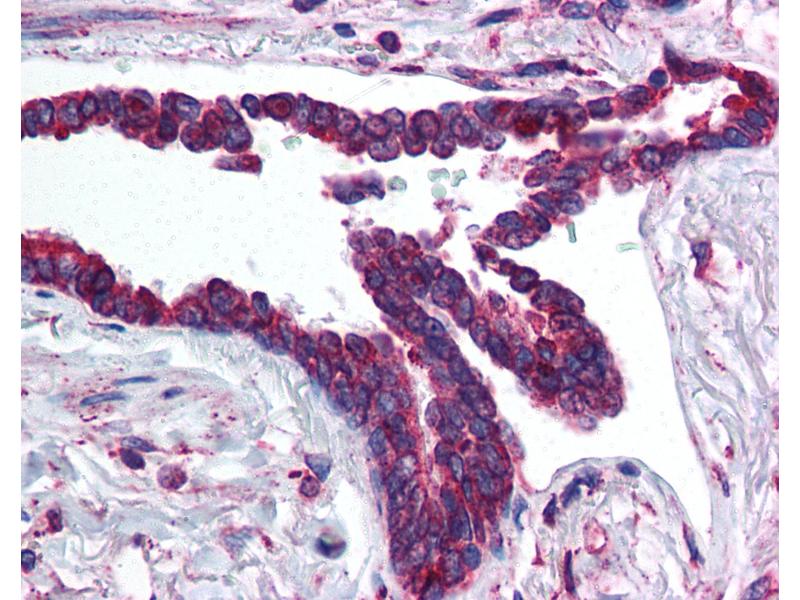 Usage: Immunohistochemistry: This antibody was validated for use in immunohistochemistry on a panel of 21 formalin-fixed, paraffin-embedded (FFPE) human tissues after heat induced antigen retrieval in pH 6.0 citrate buffer. After incubation with the primary antibody, slides were incubated with biotinylated secondary antibody, followed by alkaline phosphatase-streptavidin and chromogen. The stained slides were evaluated by a pathologist to confirm staining specificity. The optimal working concentration for this antibody was determined to be 5 μg/mL.***Does not work to detect human protein in Western blot.*** -