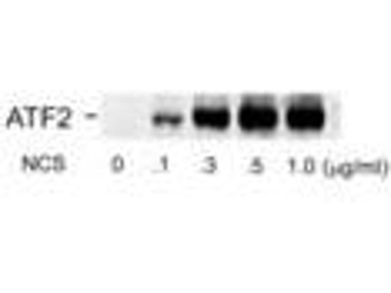 - Specific for ~74k ATF2 protein phosphorylated at Ser490498. The antibody also recognizes the phosphorylated ~54k splice form of ATF2.