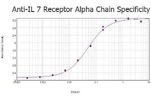 - Background: This antibody is designed, produced, and validated as part of a collaboration with the National Cancer Institute (NCI) and is suitable for Cancer, Immunology and Nuclear Signaling research. Interleukin-7 is a glycoprotein involved in the regulation of lymphopoiesis. Response of cells to IL7 is dependent on the presence of the interleukin 7 receptor (IL7R), the active receptor is an alpha/gamma chain heterodimer. The gamma(c) chain, which also associates with the interleukin-2 receptor, serves primarily to activate signal transduction by the IL7R complex, while the alpha chain of IL7R determines specific signaling events through its association with cytoplasmic signaling molecules. The human and mouse sequence is nearly identical. In humans, severe combined immunodeficiency is caused by genetic defects in IL-7 receptor. The tyrosine residue at the 449 position is a critical signaling site of the intracellular domain of IL-7 receptor. This site is rapidly phosphorylated by janus kinases after the IL-7 receptor is engaged. IL-7 Receptor Alpha Chain Antibody is ideal for investigators interested in Immunology research.