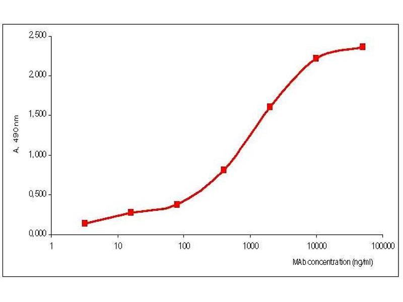 Suitable for use in ELISA and Western blot. Each laboratory should determine an optimum working titer for use in its particular application. Other applications have not been tested but use in such assays should not necessarily be excluded. Titration curve of C01345M specific to matrix protein M1 of Influenza B virus in indirect ELISA. Antigen: Influenza B/Tokyo/53/99 0.5ug/well