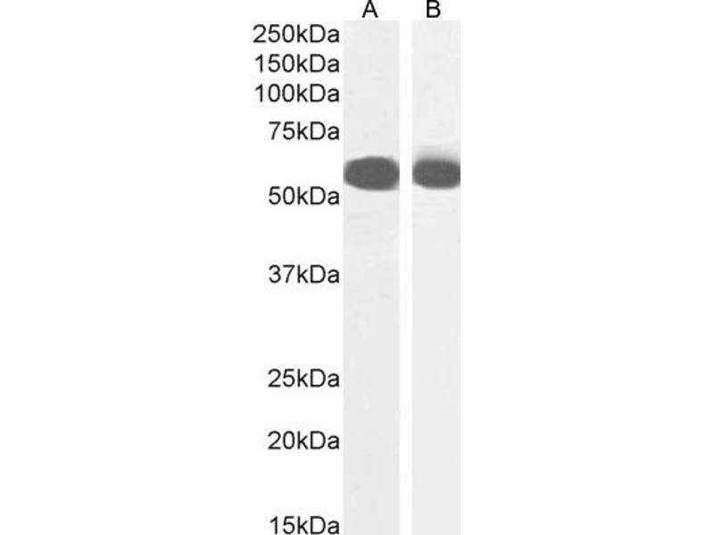 Western Blot: Approx 55-60 kDa band observed in Mouse Testis lysates and in nuclear lysates of cell line NIH3T3, and approx 55 kDa in preliminary testing at Rat testes lysate (calculated MW of 57.6 kDa according to Mouse NP_062423.1 and 57.5 kDa according t