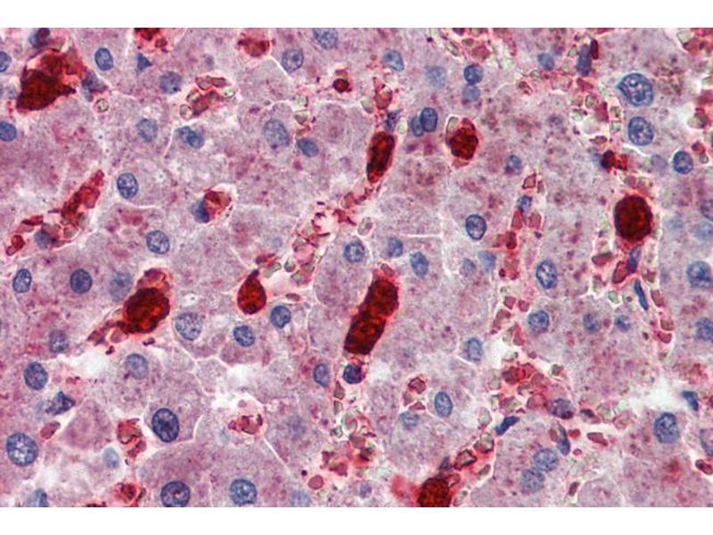 Immunohistochemistry: Paraffin embedded Human Spleen and Liver. Recommended concentration: 2.5 μg/mL.