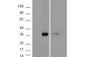 Western Blot: Approx 35 kDa band observed in lysates of cell lines HEK293, A549 and HepG2 (calculated MW of 36.0 kDa according to NP_064695.2). In transfected HEK293 transiently expressing AKR1B10 a band of approx. 40 kDa is observed. This band is not obse