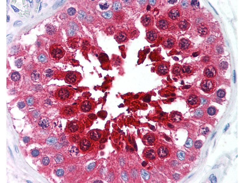 Usage: Immunohistochemistry: This antibody was validated for use in immunohistochemistry on a panel of 21 formalin-fixed, paraffin-embedded (FFPE) human tissues after heat induced antigen retrieval in pH 6.0 citrate buffer. After incubation with the primary antibody, slides were incubated with biotinylated secondary antibody, followed by alkaline phosphatase-streptavidin and chromogen. The stained slides were evaluated by a pathologist to confirm staining specificity. The optimal working concentration for this antibody was determined to be 10 μg/mL. -