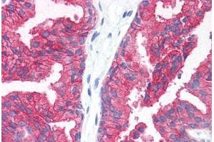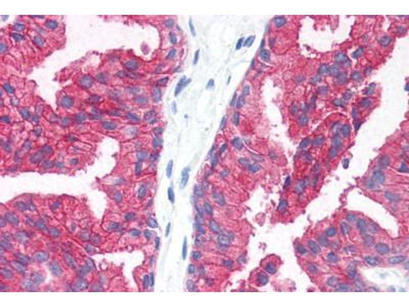Usage: Immunohistochemistry: This antibody was validated for use in immunohistochemistry on a panel of 21 formalin-fixed, paraffin-embedded (FFPE) human tissues after heat induced antigen retrieval in pH 6.0 citrate buffer. After incubation with the primary antibody, slides were incubated with biotinylated secondary antibody, followed by alkaline phosphatase-streptavidin and chromogen. The stained slides were evaluated by a pathologist to confirm staining specificity. The optimal working concentration for this antibody was determined to be 10 μg/mL. -