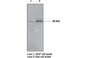 - Detected on immunoblot at 48 kDa.