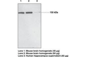 Detects the carboxy-terminal amino acids within the PDZ-binding domain of both the PHLPP1 alpha and beta isoforms. Detects the enzyme at around 150 kDa (alpha isoform) and 200 kDa (beta isoform) by western blot from various cell lines (THP-1) and tissues such as brain. Does not cross-react with PHLPP2.
