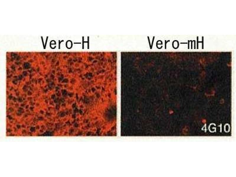 Background: Heparin-binding epidermal growth factor-like growth factor (HB-EGF) is synthesized as a membrane-anchored precursor that is proteolytically cleaved to release the soluble mature growth factor, HB-EGF. The former functions as juxtacrine and the latter as paracrine growth factor. Soluble HB-EGF shows several forms in Western blotting with apparent molecular weights 19~27 kDa due to heterogeneous O-glycosylation and N-terminal truncation. HB-EGF activates EGFR and ErbB4 and promotes the development in many tissues. In human ProHB-EGF is the cellular receptor for diphtheria toxin. Non-toxic mutant of diphtheria toxin, CRM197, inhibits HB-EGF function. As HB-EGF level is elevated in most ovarian cancer, CRM197 is being tested as an anticancer drug. The hybridoma clone 4G10 was established and characterized in the laboratory of Prof. E. Mekada of Osaka University, who is a leading scientist in this field.