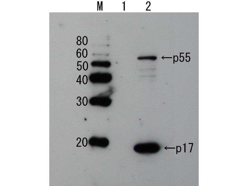 HIV-1 Gag p17 is the matrix protein of AIDS virus HIV-1 and is processed by digestion of its precursor Gag p55 by HIV-1 protease. This protein is indispensable to the reproduction of AIDS virus and constitute the essential element of the of AIDS virus particle construction.