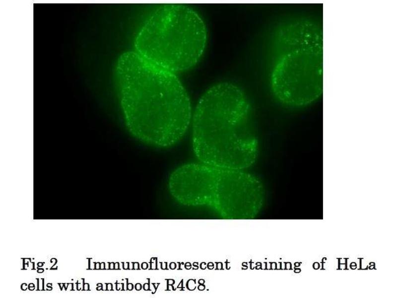 Additional comments: When injected into the nucleus, R4C8 accumulates into the nuclear pores of Hela cells. R4C8 works in immuno-cytochemistry very well.