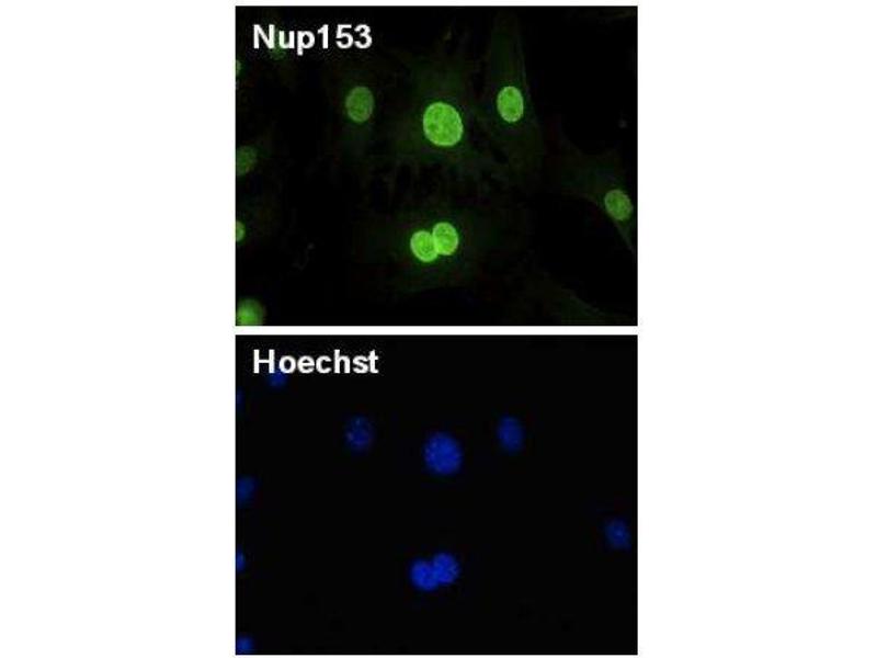 Der Ratte Monoklonal anti-NUP153 Antikörper (Klon R4C8) (ABIN2452062) detektiert spezifisch NUP153 in WB, ELISA, IF und ICC.