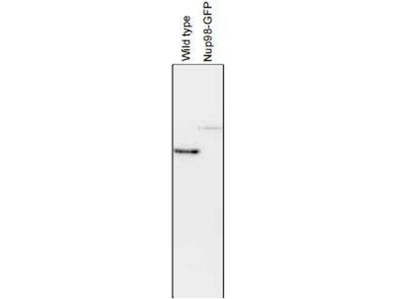Dieser Ratte Monoklonal Antikörper detektiert spezifisch NUP98 in WB, ELISA, IF, ICC und DB. Es zeigt Reaktivität gegenüber Proben von Human, Maus, Ratte, Saccharomyces cerevisiae und Schizosaccharomyces pombe. Es wurde in 2+ Publikationen zitiert.