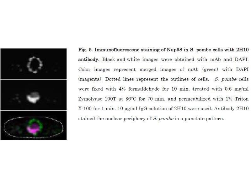 Fukuhara, Ozaki, Shikata, Katahira, Yoneda, Ogino, Tachibana: "Specific monoclonal antibody against the nuclear pore complex protein, nup98." in: Hybridoma (2005), Vol. 24, Issue 5, pp. 244-7, (2005) (PubMed).